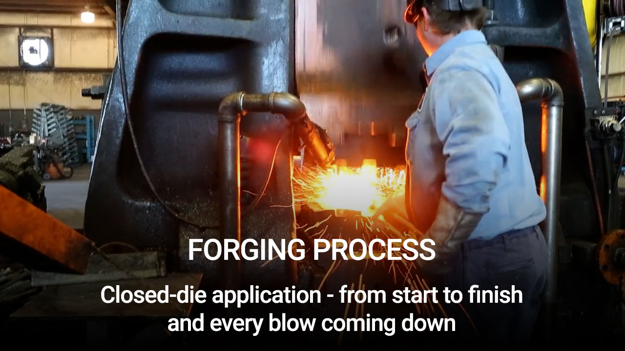 • Forging process of a stacking cap. Closed-die application -- from start to finish and every blow coming down.