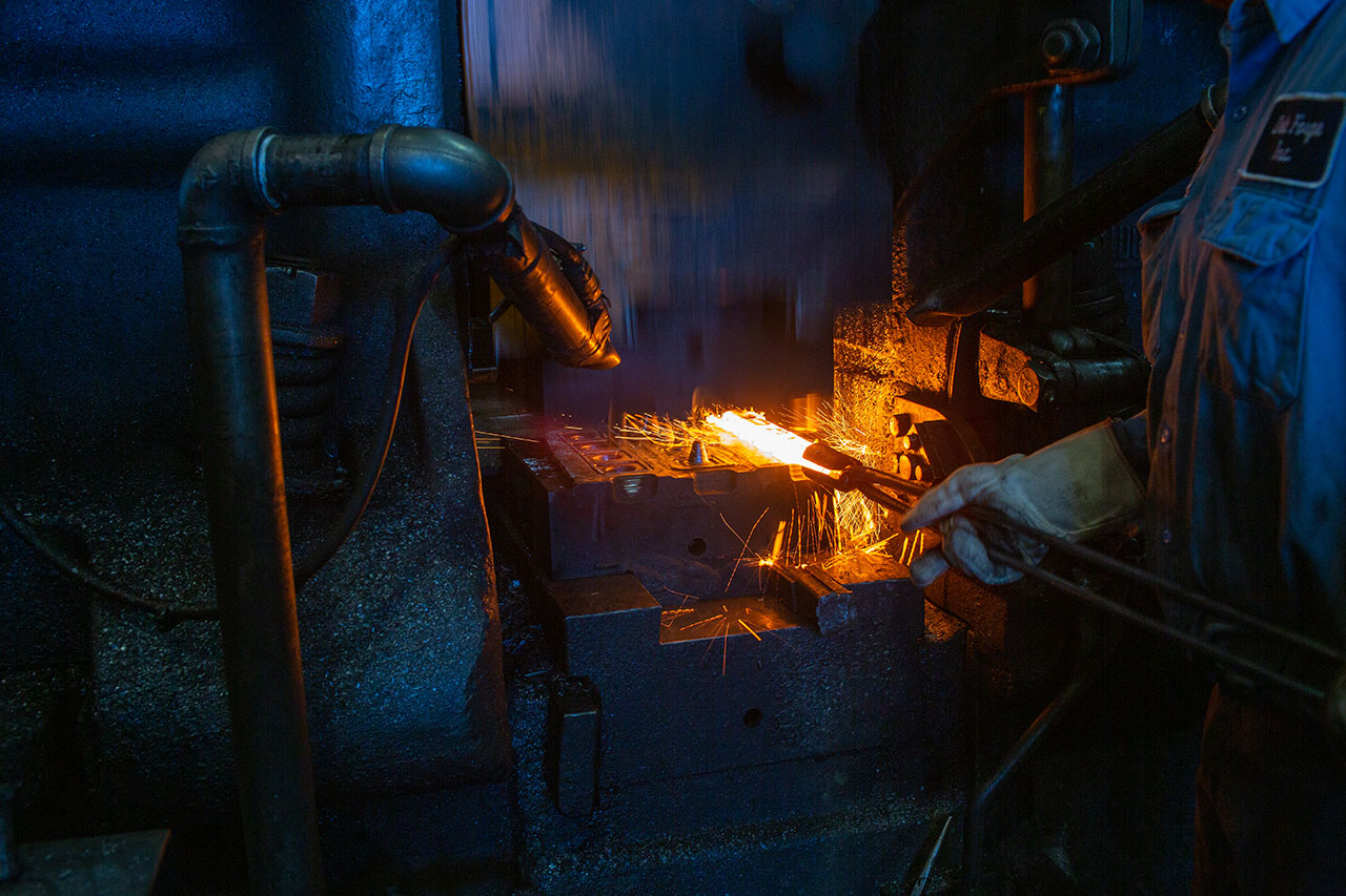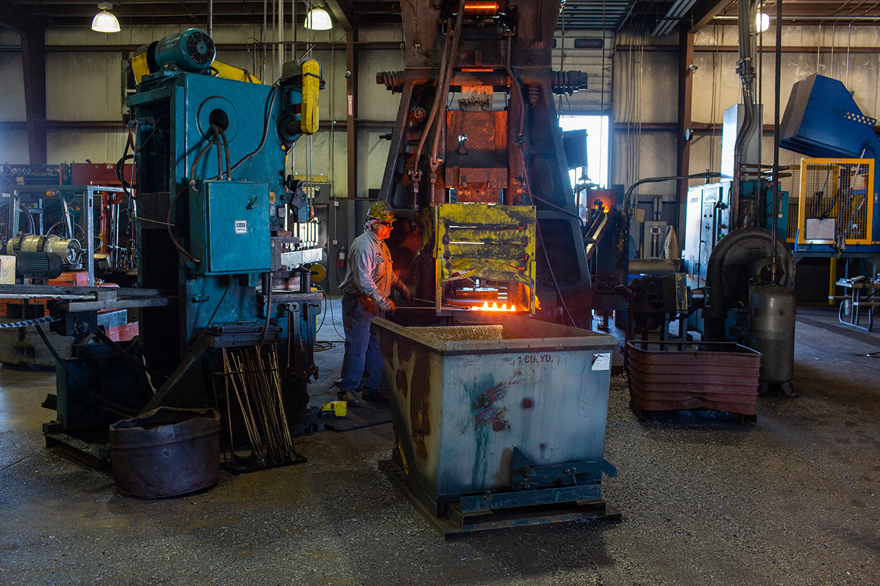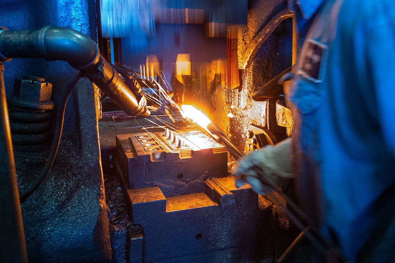 Forging process of a stacking cap. Closed-die application — from start to finish and every blow coming down.