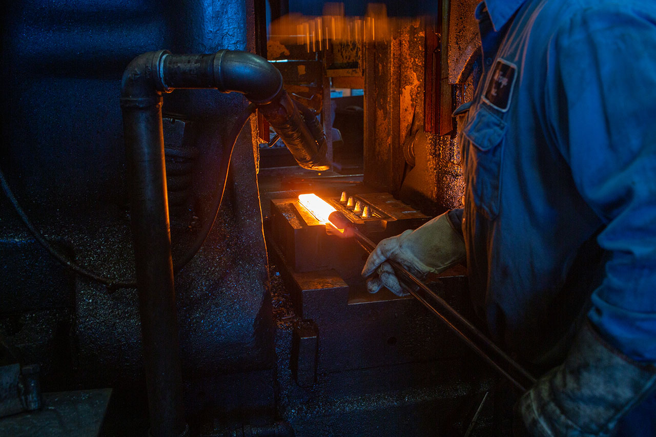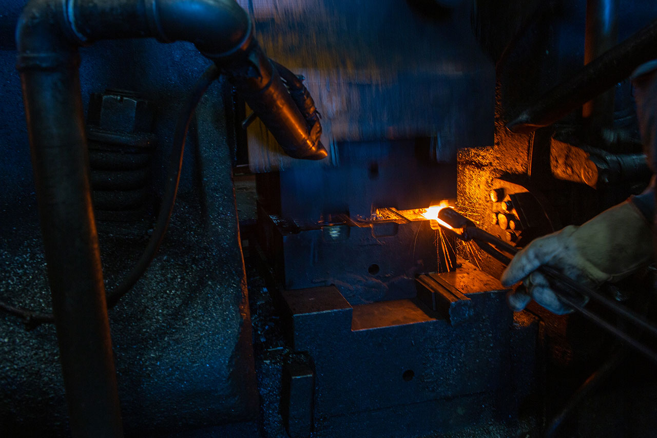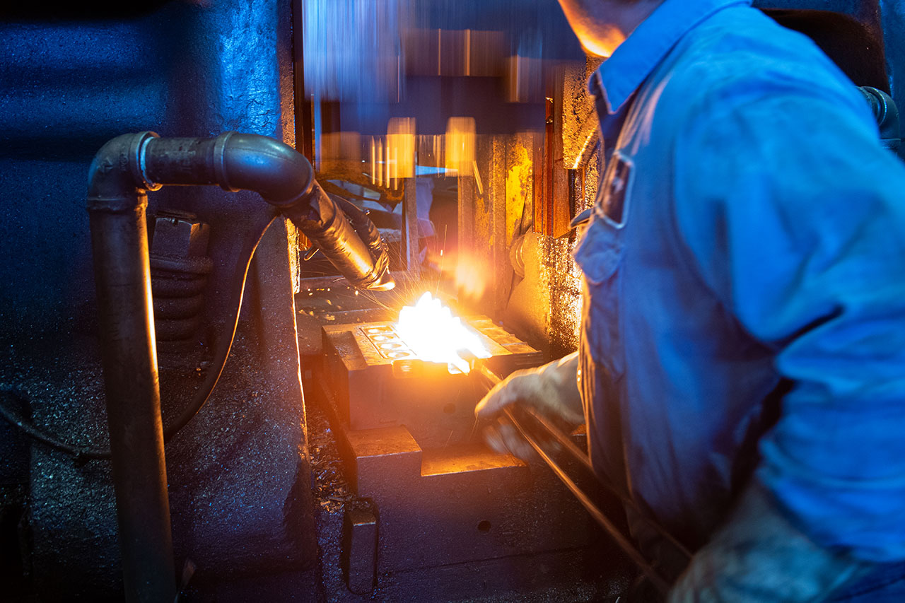 Forging process of a stacking cap. Closed-die application — from start to finish and every blow coming down.