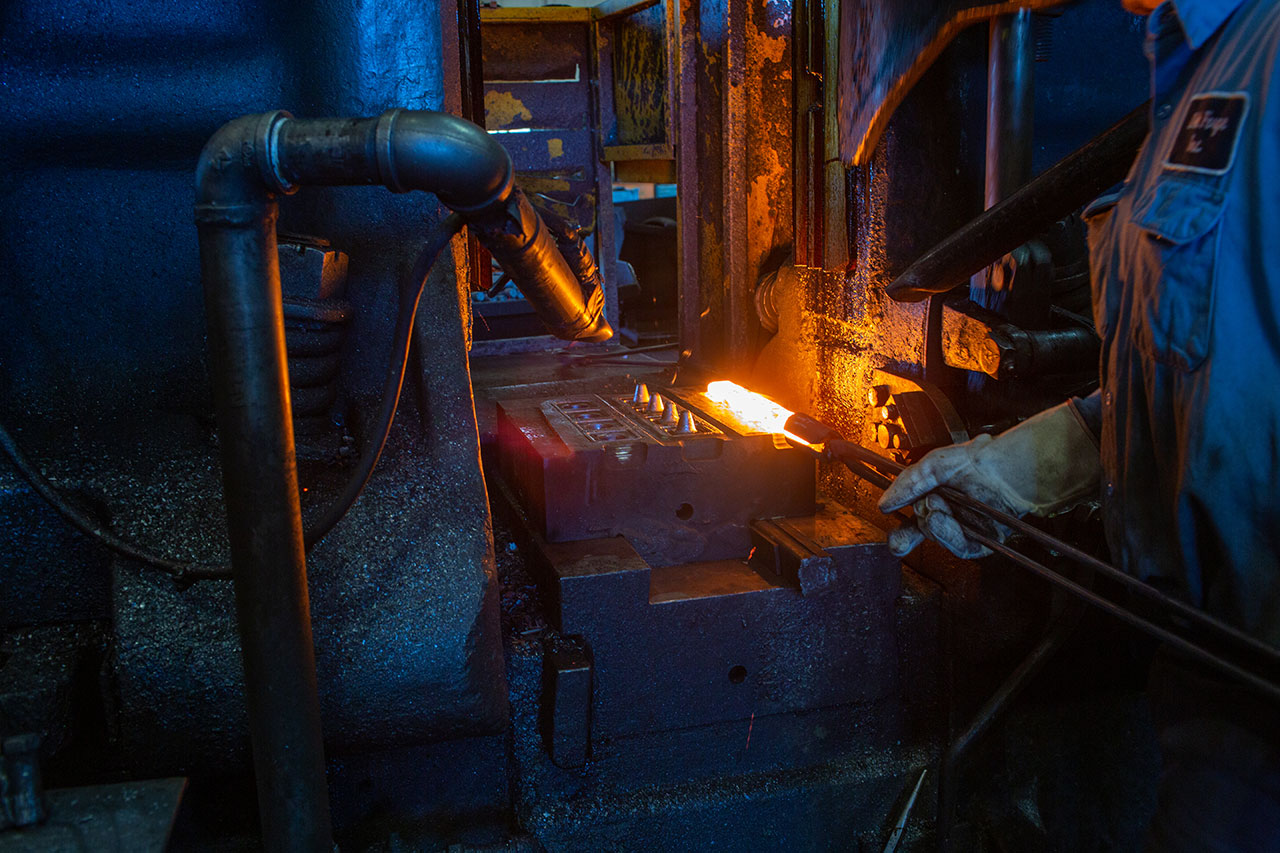 • Forging process of a stacking cap. Closed-die application -- from start to finish and every blow coming down.